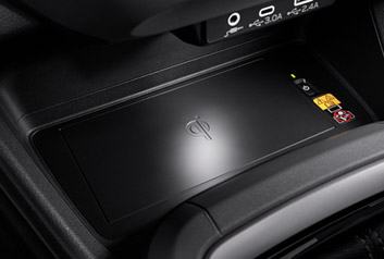 Cargá tu teléfono u otros dispositivos electrónicos compatibles con Qi. El cargador, de muy fácil acceso, está ubicado en la bandeja central del panel de instrumentos y proporciona hasta 10 W de potencia para una carga rápida.