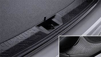 El Revestimiento de la puerta trasera y las placas de umbrales de las puertas traseras cuentan con una textura antideslizante y resistente a los rayones con un diseño de motivo de la cordillera que se conecta a la perfección para crear una atmósfera armoniosa y divertida que también es funcional. Además, las placas de umbrales ampliadas brindan un cómodo acceso a los rieles del techo.